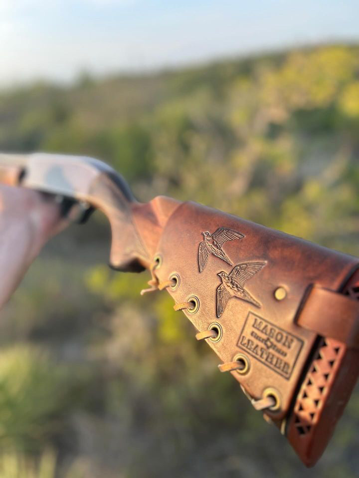 These leather shot shell cuffs will keep extra shells close for quick reloads! These look and fit great on everything from vintage doubles to modern pumps and autos.